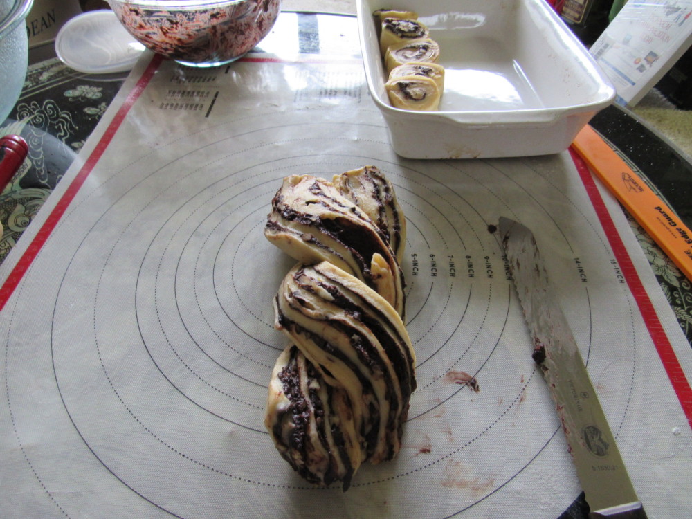 Another thing my Indian friend made from The “Jerusalem” cookbook by Ottolenghi and Tamimi, was krantz cake. I think she used walnuts instead of pecans though. I believe that krantz cake is kind of like a fancier babka. Making krantz cake is a lot like making cinnamon rolls except you half the dough and then braid it.