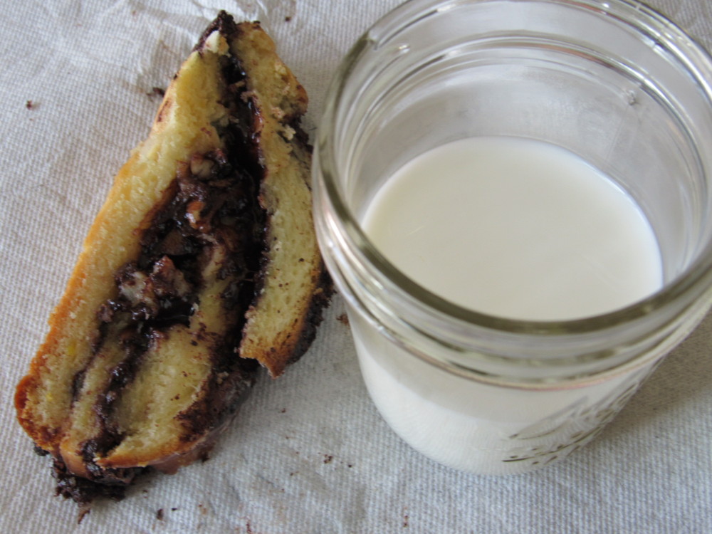 As soon as we ate 3/4 of the first cake, we started brainstorming all kinds of variations. I guess we felt we were bad asses now that we completed such a great pastry feat. The lemon peel element was good, but I think I would prefer orange. The pecans made the roll a little too chunky in my opinion.